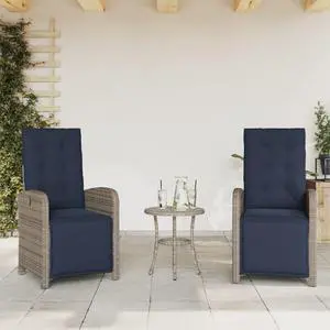 vidaXL Patio Dining Set with Cushions Reclining Chair 2 Piece Gray Poly Rattan