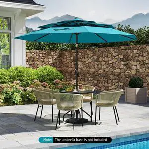 SlickBlue 10 Feet Solar Patio Umbrella with 32 LED Lights 3-Tier Vented Top-Turquoise