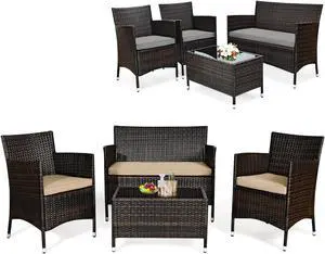 SlickBlue 4 Pieces Comfortable Outdoor Rattan Sofa Set with Glass Coffee Table