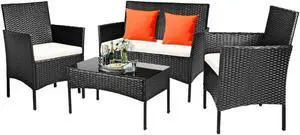 SlickBlue 4 Pieces Rattan Patio Furniture Set with Weather Resistant Cushions and Tempered Glass Tabletop