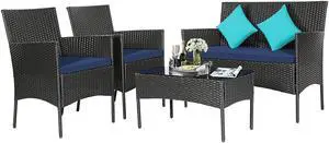 SlickBlue 4 Pieces Patio Rattan Cushioned Sofa Set with Tempered Glass Coffee Table