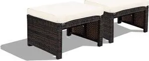 SlickBlue 2 Pieces Patio Rattan Ottomans with Soft Cushion for Patio and Garden
