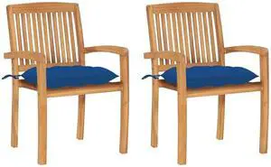 vidaXL 2x Solid Teak Wood Patio Chairs with Blue Cushions Garden Dining Chair