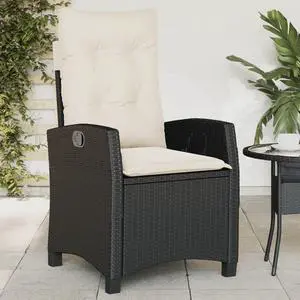 vidaXL Reclining Patio Chair with Cushions Outdoor Furniture Black Poly Rattan