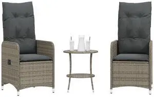 vidaXL Reclining Patio Chairs with Table Furniture 2 Pcs Gray Poly Rattan