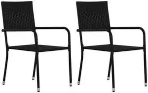 vidaXL Garden Dining Chair Set of 2 Black PE rattan, steel