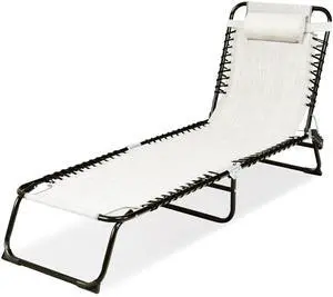 Outdoor Folding Lounge Chaise Adjustable Patio Poolside Cot w/ Pillow Gray