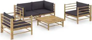 vidaXL Patio Lounge Set 5 Piece with Dark Gray Cushions Bamboo Garden Seat