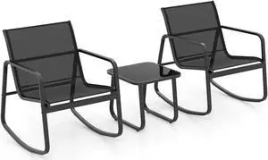 SlickBlue 2 Rocking Bistro Chairs and Glass-Top Table for Porch Yard Balcony-Black