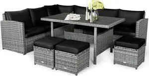 SlickBlue 7 Pieces Patio Rattan Dining Furniture Sectional Sofa Set with Wicker Ottoman