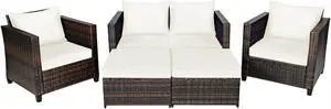 SlickBlue 5 Pieces Patio Cushioned Rattan Furniture Set