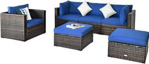 Size: Overall: 24.8" H x 113.62" W x 58.98" D Corner Chair: 24.8" H x 29.45" W x 29.45" D Seat Height Without Cushion 11.02" Seat Depth 28.54" Arm Height 24.8" Seat Back Height 13.78 Back Height 24.8" Cushion Thickness 3.35". Armless Chair: 24.8" H x 27.36" W x 29.53" D Seat Height Without Cushion 11.02" Seat Depth 28.54" Seat Back Height 13.78 Back Height 24.8" Cushion Thickness 3.35" Fire Pit Table: 31" H x 44" W x 25.1" D