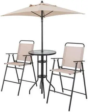 SlickBlue 4 Pieces Outdoor Bar Set with Umbrella-Beige