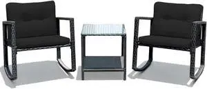 SlickBlue 3 Piece Patio Rocking Set with Smooth Rocking Motion Outdoor Rocker Chair Bistro Set-Black
