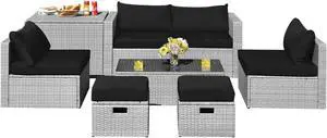 SlickBlue 4 pcs Patio Garden Wicker Rattan Cushioned Sofa Set