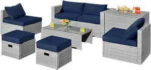 SlickBlue 4PC Rattan Patio Furniture Set Outdoor Wicker With Blue Cushion