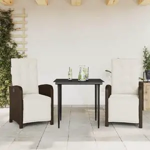 vidaXL Bistro Set with Cushions Outdoor Furniture 3 Piece Brown Poly Rattan