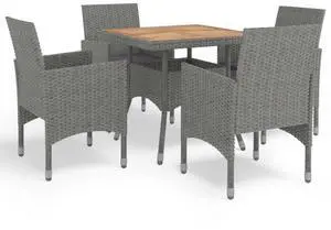 vidaXL Patio Dining Set with Cushions Outdoor Furniture 5 Piece Gray Poly Rattan