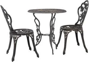 vidaXL Patio Bistro Set 3 Piece Garden Table and Chair Outdoor Cast Aluminum