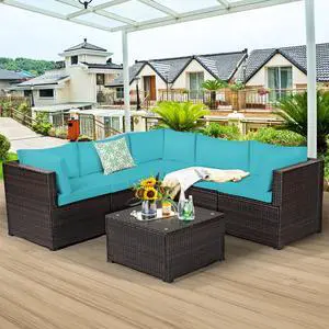Size: Overall: 24.8" H x 113.62" W x 58.98" D Corner Chair: 24.8" H x 29.45" W x 29.45" D Seat Height Without Cushion 11.02" Seat Depth 28.54" Arm Height 24.8" Seat Back Height 13.78 Back Height 24.8" Cushion Thickness 3.35". Armless Chair: 24.8" H x 27.36" W x 29.53" D Seat Height Without Cushion 11.02" Seat Depth 28.54" Seat Back Height 13.78 Back Height 24.8" Cushion Thickness 3.35" Fire Pit Table: 31" H x 44" W x 25.1" D