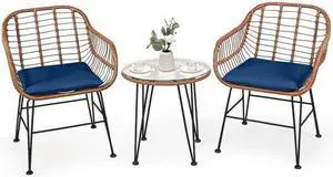 SlickBlue 3 Pieces Patio Rattan Bistro Set with Cushion