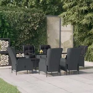 vidaXL Patio Dining Set 7 Piece Patio Conversation Set Dark Gray Poly Rattan