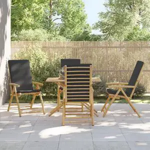 vidaXL Folding Patio Reclining Chairs with Dark Gray Cushions 4 Piece Bamboo