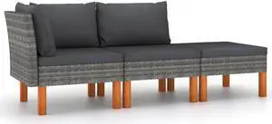 vidaXL Patio Dining Set with Cushions Garden Furniture 3 Piece Gray Poly Rattan
