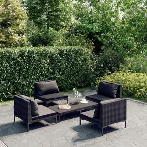 vidaXL Patio Lounge Set 6 Piece with Cushions Poly Rattan Black Garden Sofa