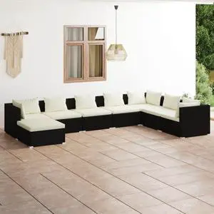 vidaXL Patio Lounge Set 8 Piece with Cushions Poly Rattan Black Garden Sofa