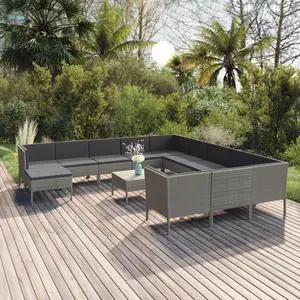 vidaXL Patio Lounge Set 13 Piece Sectional Sofa for Outdoor Poly Rattan Gray