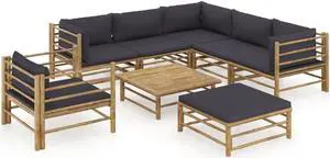 vidaXL Patio Lounge Set 8 Piece with Dark Gray Cushions Bamboo Garden Seat