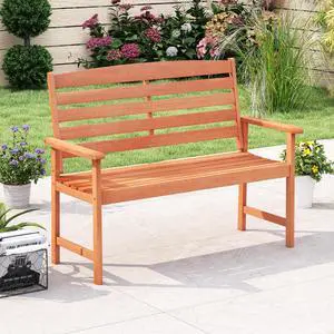 SlickBlue 2-Person Wooden Garden Bench with Slatted Backrest and Comfortable Armrests
