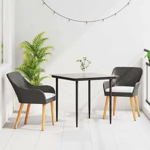 vidaXL Garden Dining Set with Cushion 3 pcs Black Poly Rattan