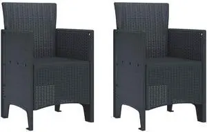 vidaXL Garden Dining Chair 2 pcs Black 25.79 x 23.23 x 34.65 in HDPE