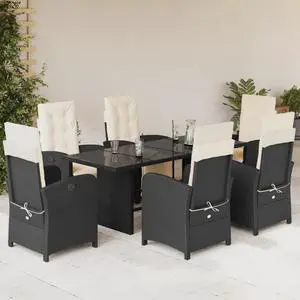 vidaXL Patio Dining Set with Cushions Garden Furniture 7 Piece Black Poly Rattan