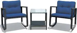 SlickBlue 3 Pcs Cushioned Patio Rattan Set with Rocking Chair and Table