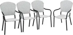 SlickBlue Set of 4 Patio Rattan Stackable Dining Chair with Armrest for Garden-White