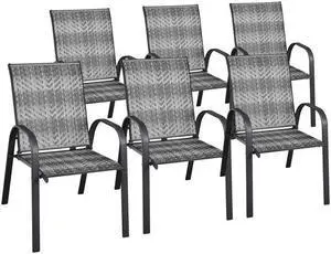 SlickBlue Set of 6 Outdoor PE Wicker Stack-able Chairs with Sturdy Steel Frame