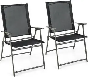 SlickBlue Set of 2 Patio Folding Chairs Sling Portable Dining Chair Set with Armrest