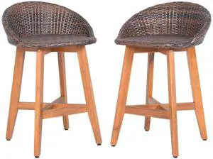 SlickBlue Outdoor Faux Rattan Bar Chairs Set of 2 with Ergonomic Backrests and Footrests-Brown