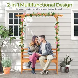 SlickBlue 6.5 FT Tall Patio Garden Arbor with Pergola and 2-Seat Bench for Garden Backyard Decoration-Yellow