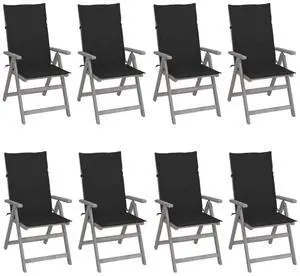 vidaXL Outdoor Recliner Chairs 8 Pcs Patio Chair with Cushions Gray Acacia Wood