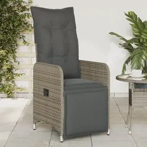 vidaXL Reclining Patio Chair with Cushions Outdoor Furniture Gray Poly Rattan