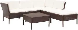 vidaXL Patio Furniture Set 6 Piece Sectional Sofa with Table Rattan Brown