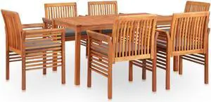 vidaXL Solid Acacia Wood 7 Piece Patio Dining Set with Cushions Table Chairs