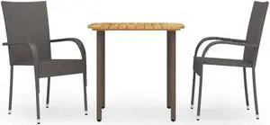 vidaXL Patio Dining Set 3 Piece Patio Table and Chair Set Solid Wood Acacia