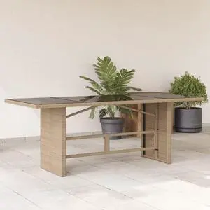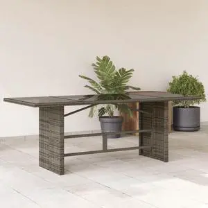 vidaXL Patio Table with Glass Top Outdoor Garden Furniture Gray Poly Rattan
