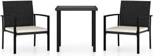 vidaXL Patio Dining Set with Cushions Garden Furniture 3 Piece Black Poly Rattan