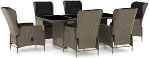 vidaXL Patio Dining Set 7 Piece Table Chair with Cushions Poly Rattan Brown